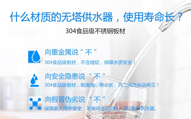 很多顧客在選購無塔供水器的時候,都有這樣一個疑問,無塔供水器的不銹鋼材質也會影響使用壽命嗎?答案是:是的,一款無塔供水器的材質不僅會影響用水安全,還會影響到使用壽命!下面我會就使用壽命的長短,來分析一下市面上的兩種常見材質不銹鋼板材。