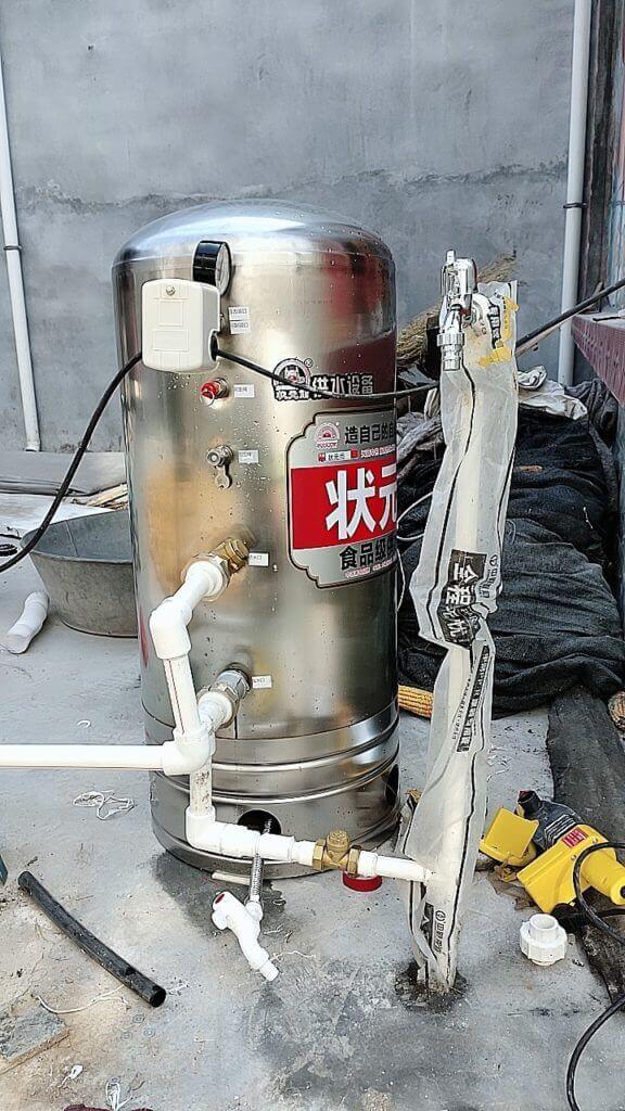 所謂無塔供水器,通俗來講就是一臺可以儲水和增壓的供水設備,功能雖強大,但安裝很簡單,罐體本身就那么幾個接口,上面接壓力表,最矮的接出水口,稍高點接進水口,簡單易懂便于操作。就是利用水泵向密封的罐體里打水,然后罐體里的空氣被壓縮,慢慢的就產生了壓力,根據用水的情況不同,設置不同的壓力就好。?