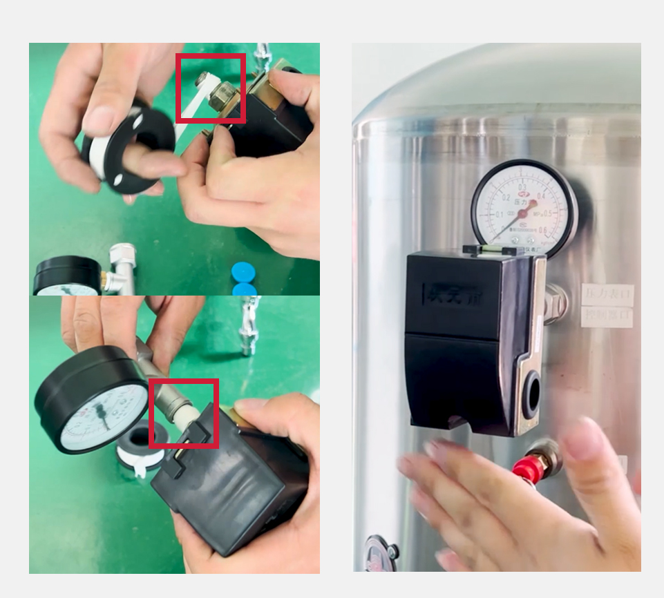 注意:將安裝好的壓力控制器借助扳手來擰緊,擰緊之后控制器朝下
